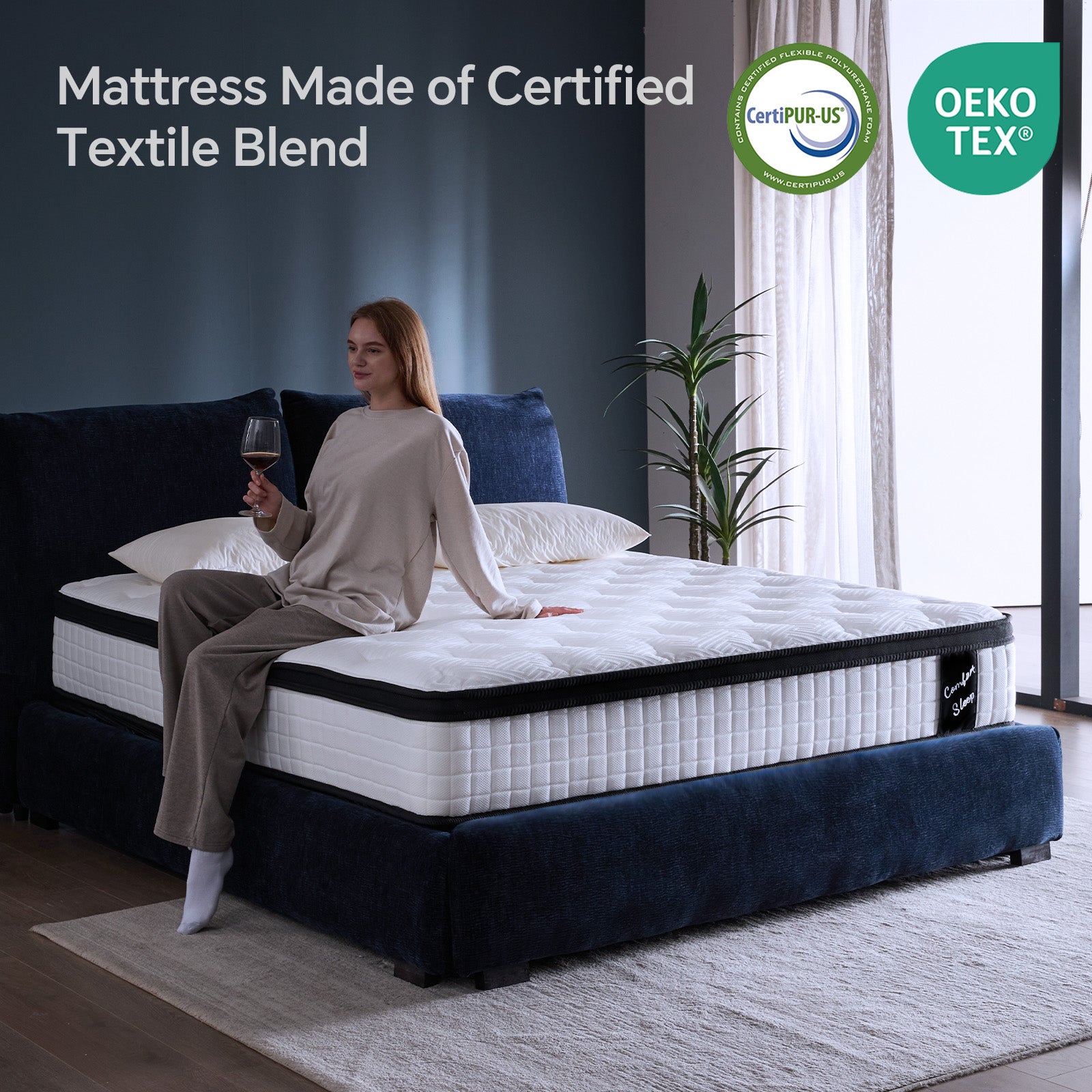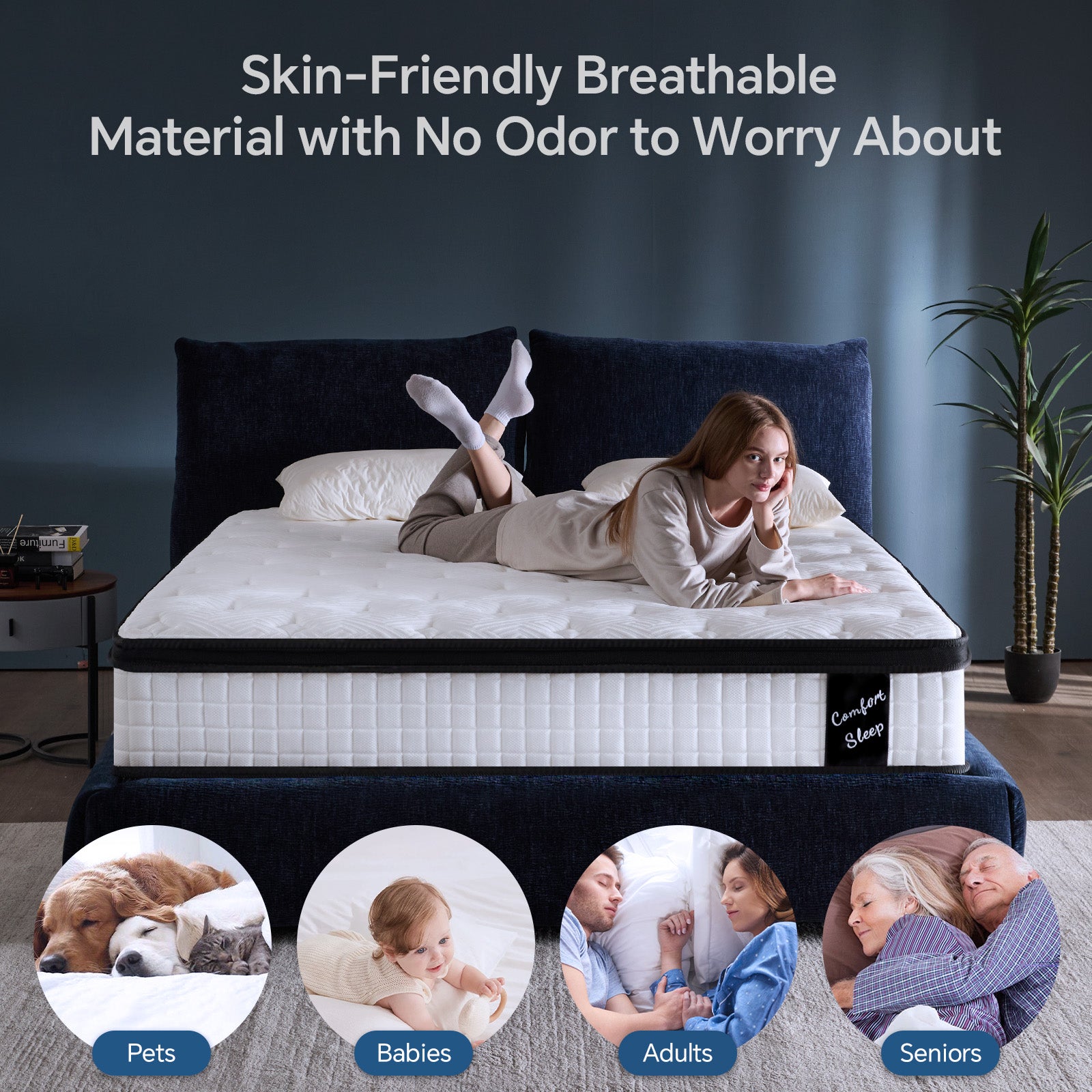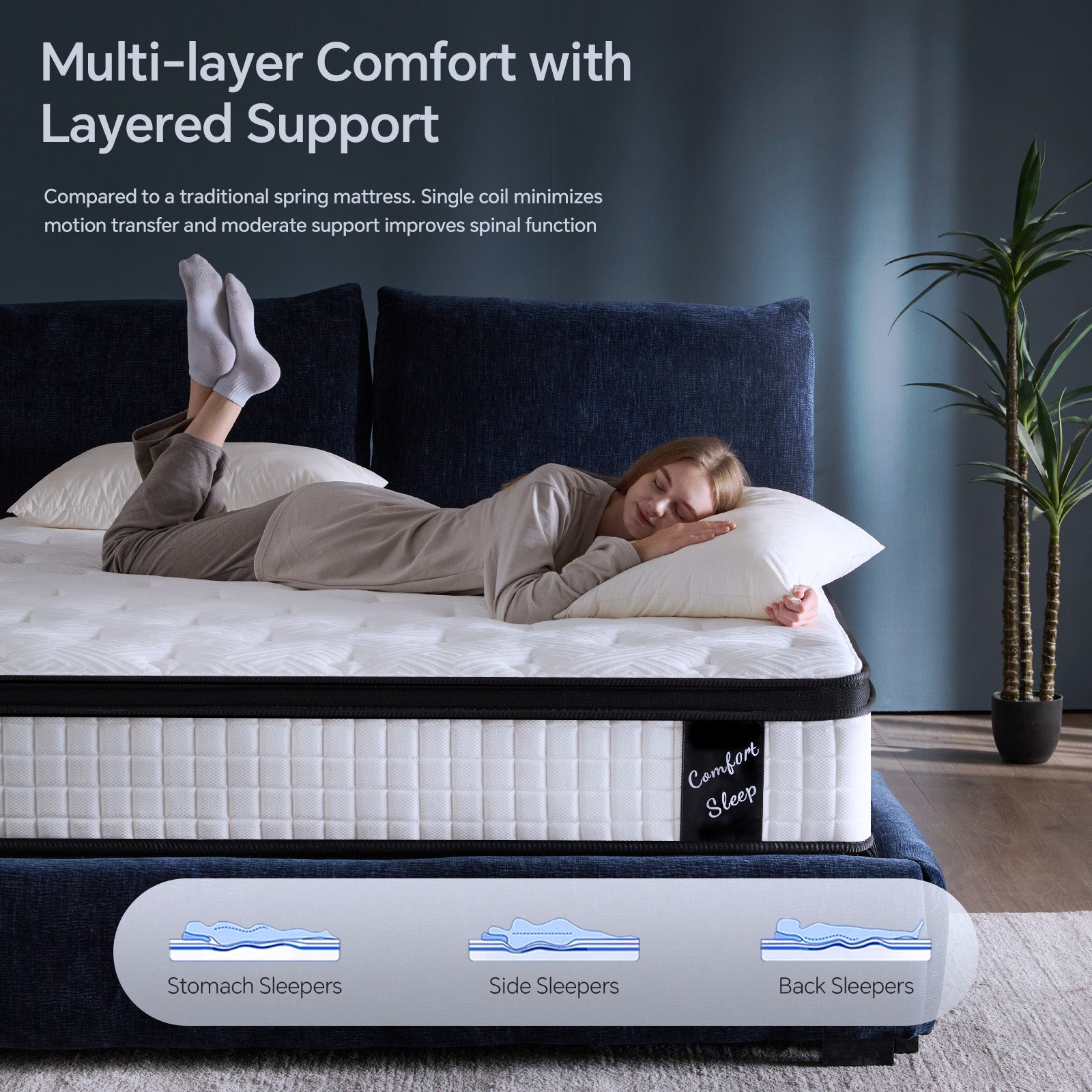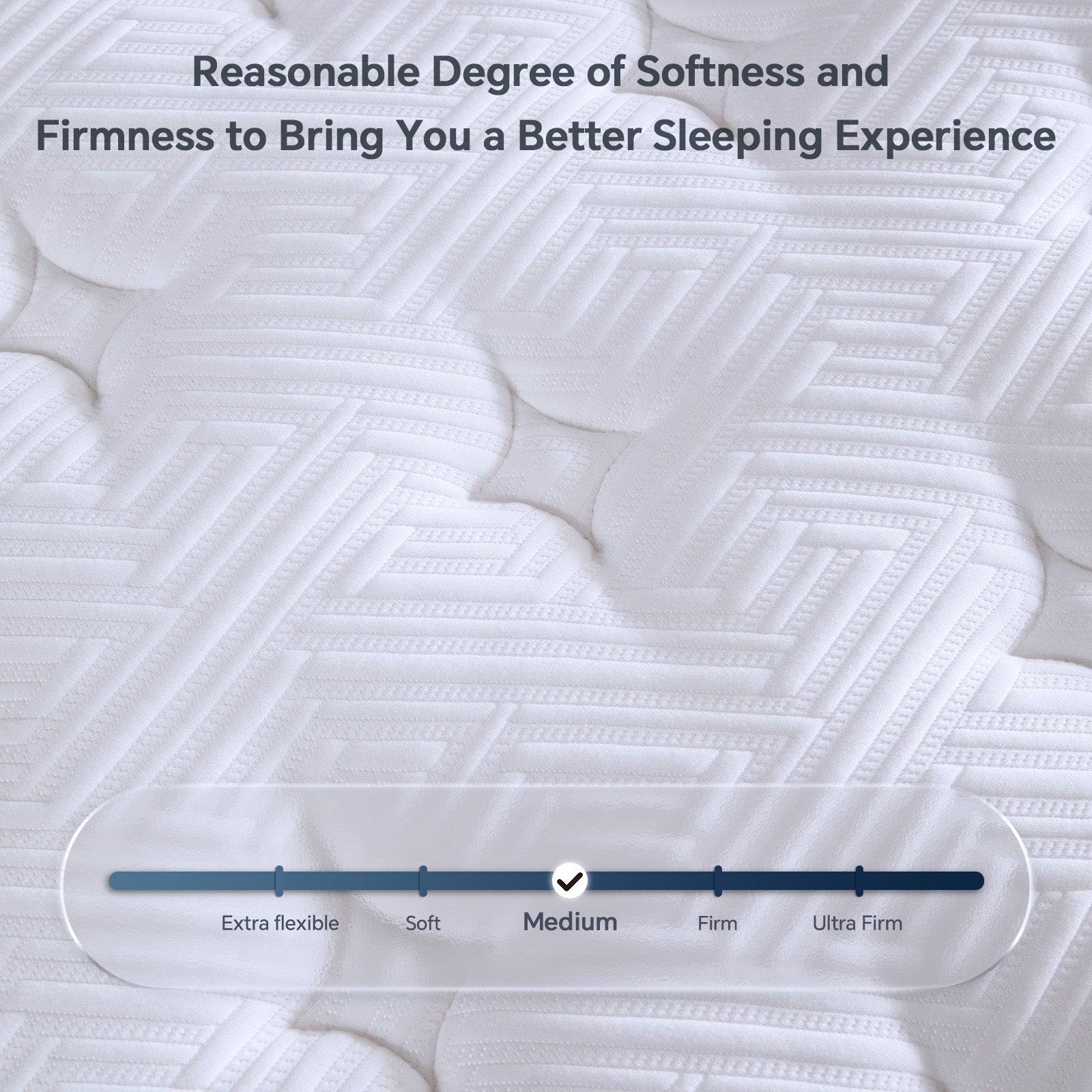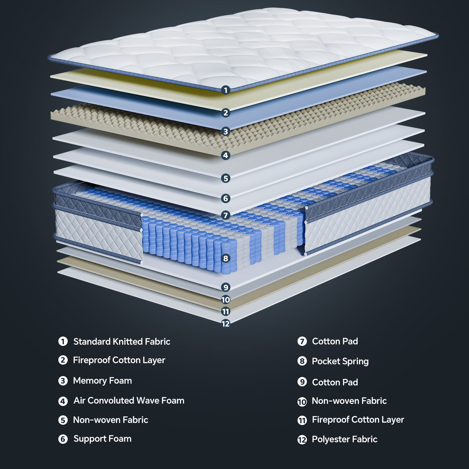 Experience restful nights free with the superior comfort and medium-firm support of Blinddarm 12-inch California King Size Hybrid Memory Foam Mattress. The medium-firmness level is carefully chosen to offer enough support for your spine while still being soft enough to cradle your body. The independent pocketed springs prevent motion transfer and noise, ensuring uninterrupted sleep even if you or your partner tosses and turns. With high-density support foam, Blinddarm mattress provides excellent weight distribution for optimal pressure relief, leaving you feeling revived every morning. Adopting bamboo breathable knitted fabric, this mattress helps regulate the temperature and humidity during sleep, keeps the sleeping environment comfortable, and reduces sleep interruptions caused by overheating or overcooling. Certified by CertiPUR-US and OEKO-TEX, you can rest assured that you are sleeping on a safe and healthy mattress. For any queries or concerns, our devoted team is on hand to offer assistance.