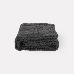 Blinddarm Chunky Knit Blanket Throw 50"x60", 100% Hand Knit Chenille Throw Blanket Reversible Design for Sofa & Home Decor, Dark Gray
