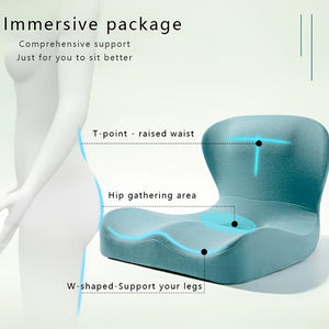 Experience the ultimate sitting solution with our unique T-point raised waist design that cradles your lower back, a contoured hip gathering area for pelvic support, and a W-shaped base that comfortably supports your legs to improve circulation. The innovative hollow design ensures maximum breathability, keeping you cool and comfortable while reducing pressure buildup.