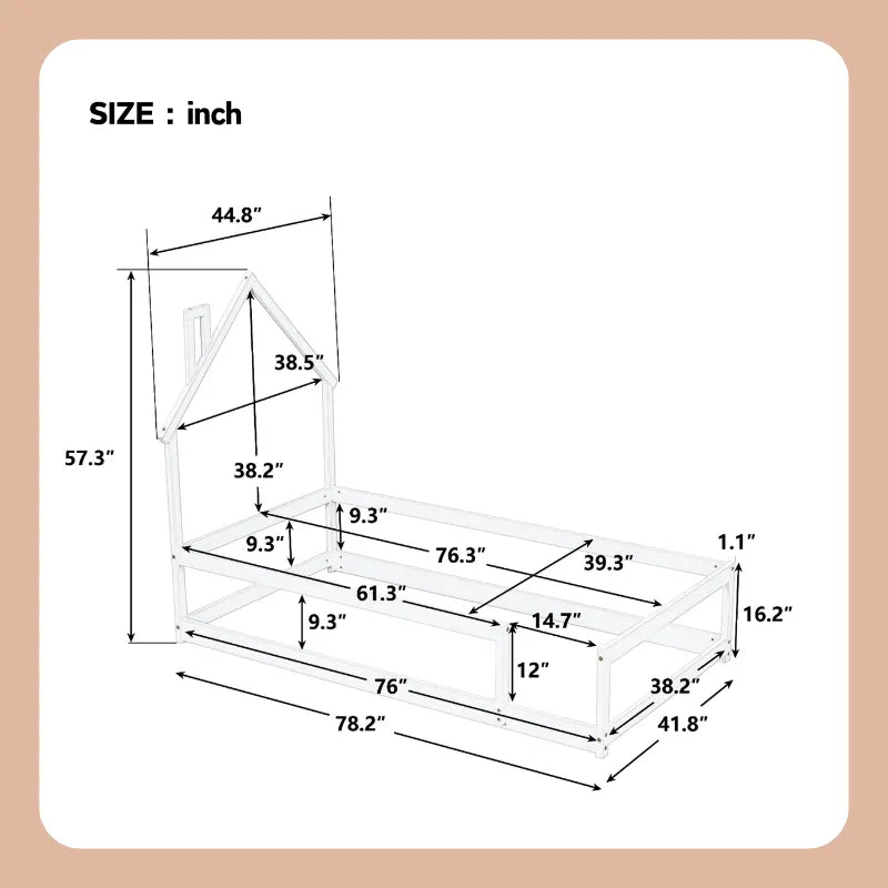 [Stylistic Elements] A twin-size mattress (Not included) can be laid down within the bed frame to ensure security and safety protection. The headboard combines the house-style structure with bed sleeping function. Moreover, there are a variety of classic colors that you can choose, from that you believe suits your bedroom the best.