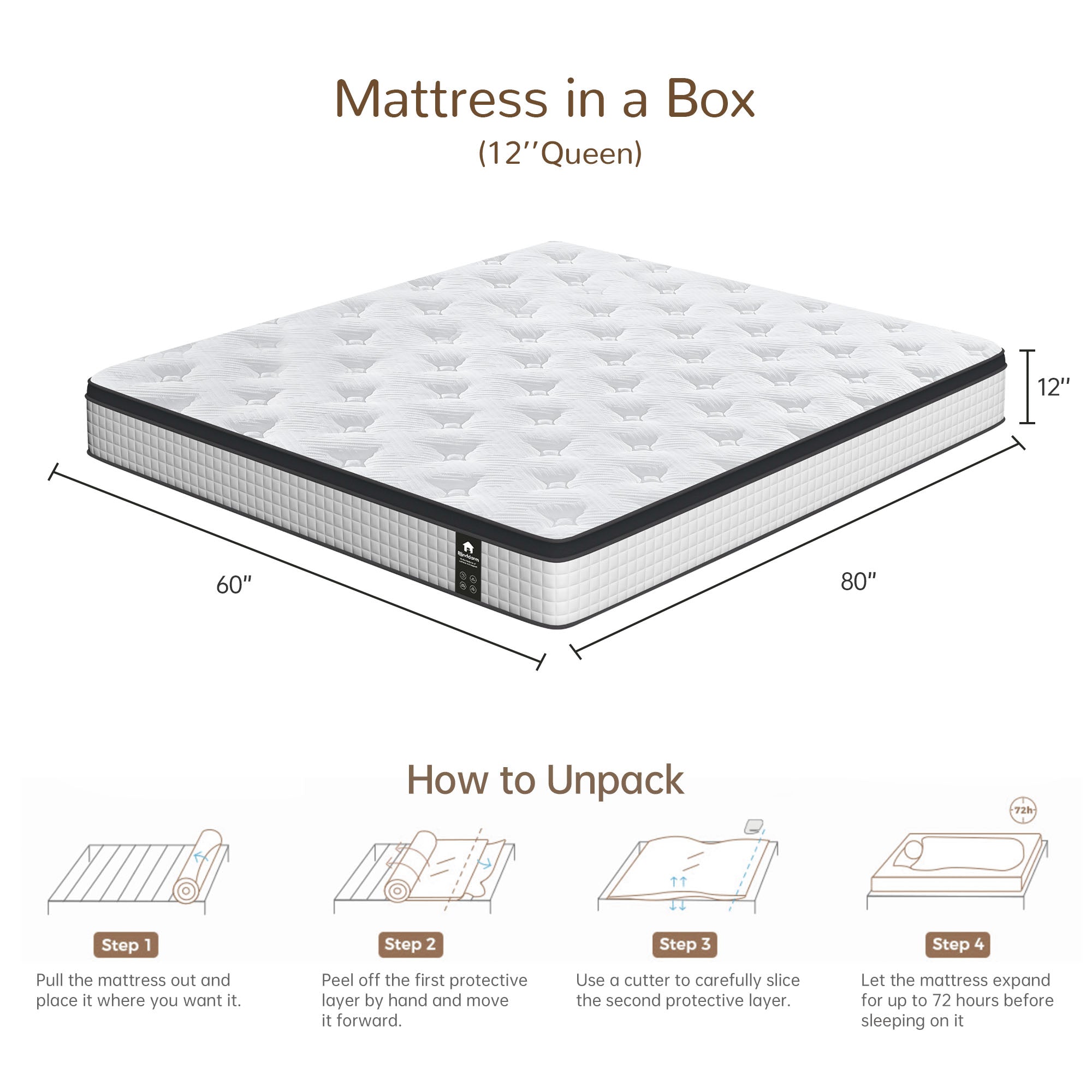 Blinhddarm 12" Hybrid Mattress Medium Firm Euro Top Mattress