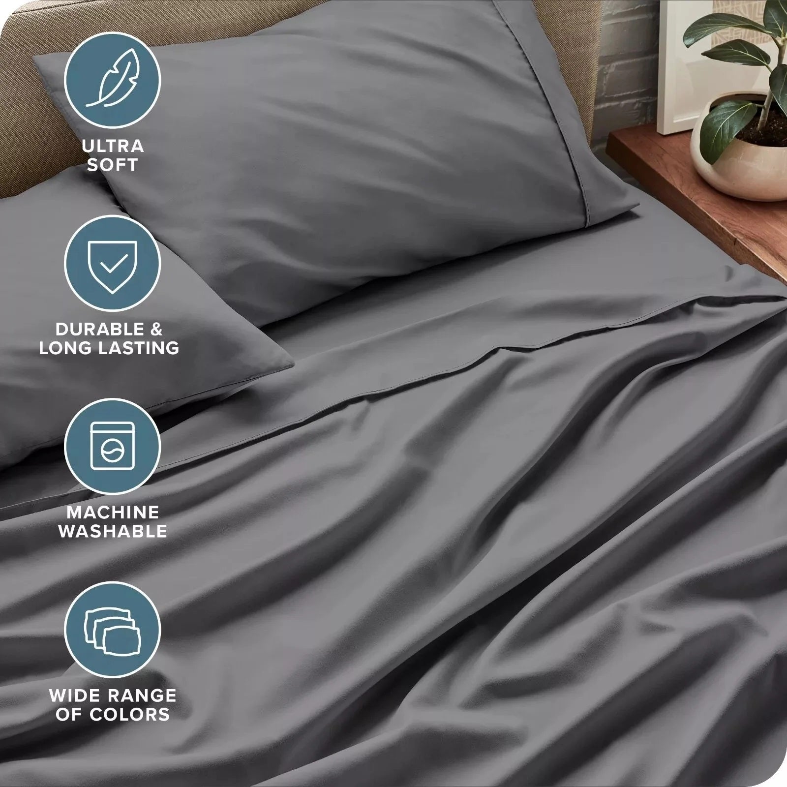 Fitted Sheet Twin Size Standard Pocket Microfiber Sheet Sets, Gray