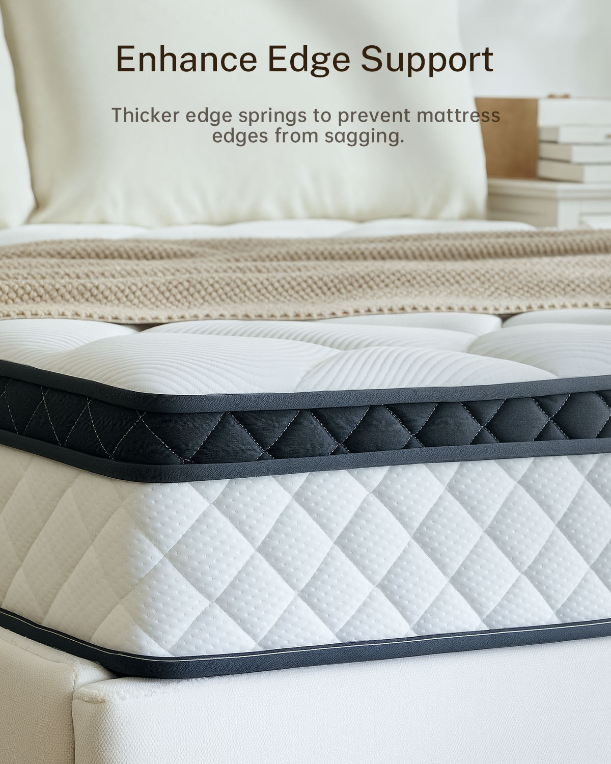 7-ZONED SUPPORT SYSTEM WITH INDIVIDUALLY WRAPPED COILS: Engineered with edge springs that are 30% denser than traditional hybrid mattresses, this advanced design reduces edge roll-off by 40% while providing targeted pressure relief for your hips, shoulders, and spine.