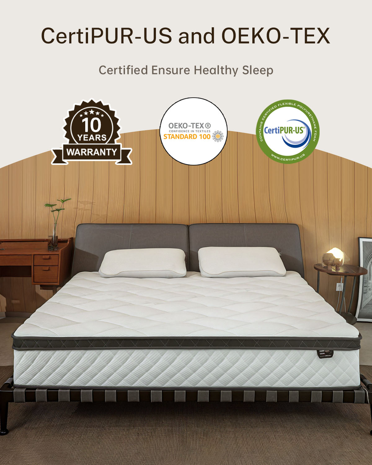 CertiPUR-US CERTIFIED SAFE MATERIALS: This mattress features CertiPUR-US certified memory foam, meticulously designed to ensure optimal spinal alignment and relieve pressure points, while our fiberglass-free construction delivers worry-free comfort for years to come. Rest assured—every layer adheres to strict safety standards, with zero compromise on materials or performance.