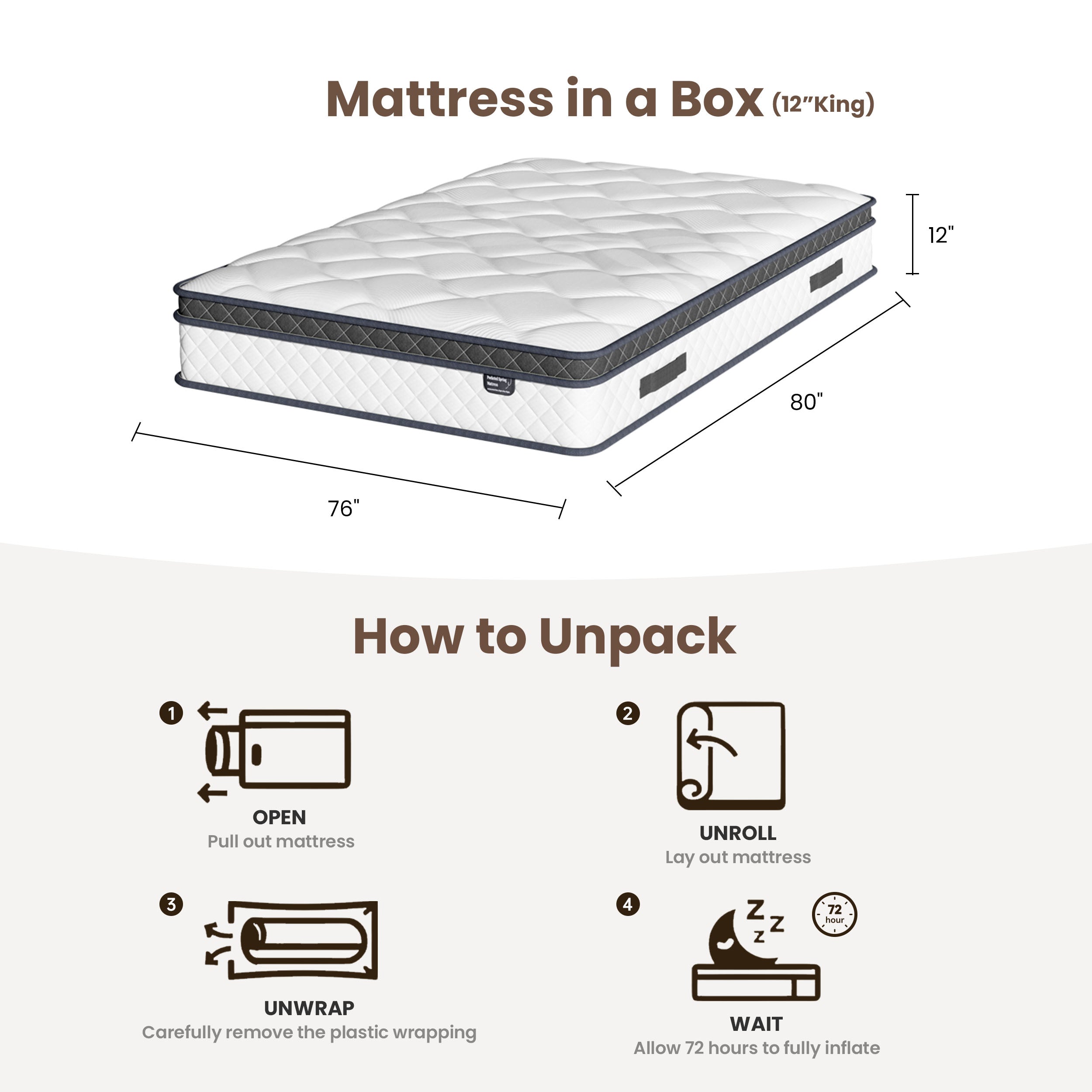 Hybrid Mattress, 10 & 12 Inch Hybrid Mattress in a Box, Memory Foam Pocket Coils Innerspring Mattresses, Fiberglass Free, Pressure Relief, Medium Firm