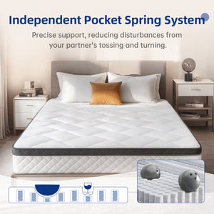 10-12 Inch Mattress Memory Foam & Individual Pocket Spring Hybrid Mattress, Medium Firmness, Mattress in a Box, CertiPUR-US