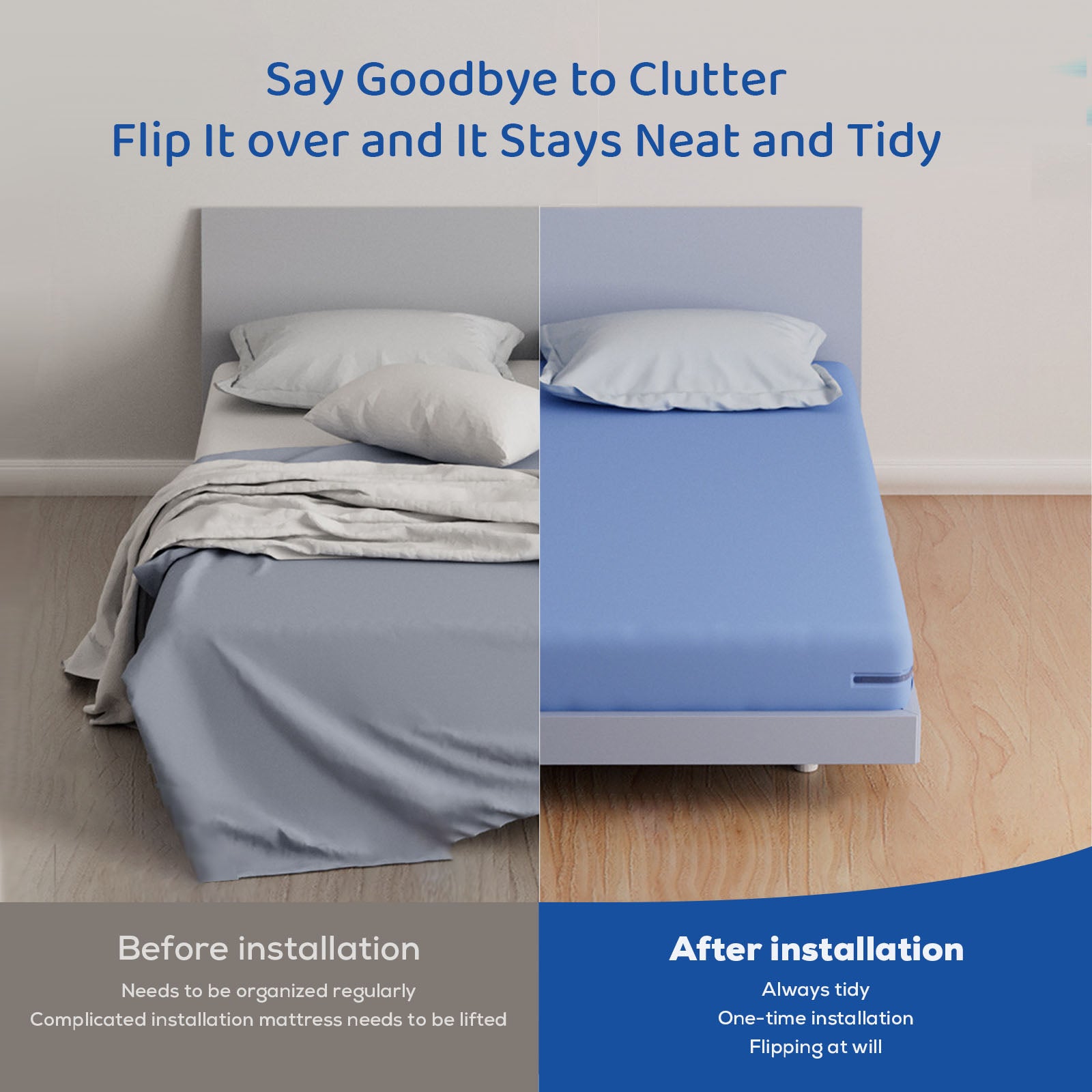 End shifting sheets instantly! Blinddarm heavy-duty bed sheet holders securely lock your fitted sheet in place, preventing sliding and wrinkles for comfortable sleep. Crafted with durable, high-quality materials for long-lasting grip that keeps sheets tight and flat. Virtually invisible design discreetly tucks under mattress corners without compromising aesthetics. Universal fit for all mattresses (Twin/Full/Queen/King/Cal King) and quick 10-second setup ensures hassle-free bedding perfection. Sleep soundly on a flawlessly smooth bed!
