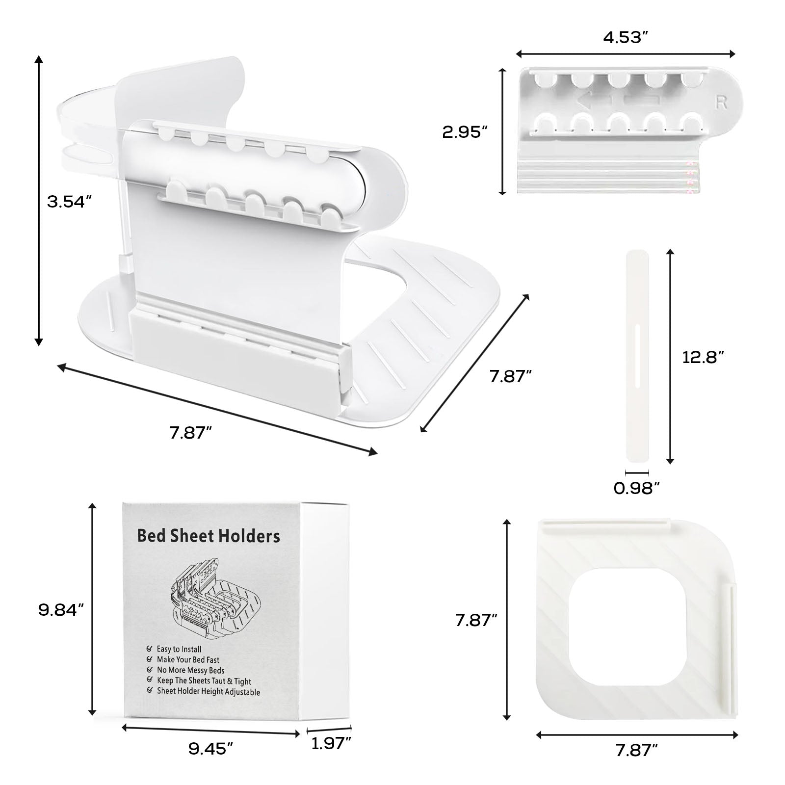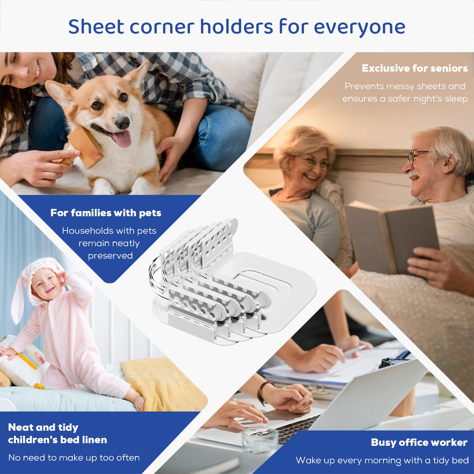 Lock Bed Sheet Holders for Bed Corners Set of 4, Secure Bed Sheets Firmly in Place for No More Loose Sheets, Fits All Sheet Sizes, White