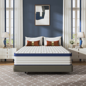 A comfortable and healthy sleeping environment needs to start with choosing a high-quality mattress. This 12'' medium firm hybrid mattress is designed to combine with individual pocket springs and comfort memory foam layers, which provides ultimate comfort and outstanding support. The independent pocket spring of this mattress not only has good spring performance but also has a long service life. At the same time, the feature of segmented support can ensure that you can get comprehensive body support from head to foot and relieve the pressure on your body during sleep. This hybrid mattress is compressed in a box and smartly shipped to your door. There are twin, full, queen, and king size mattresses for you to choose from to meet your bed mattress demand.