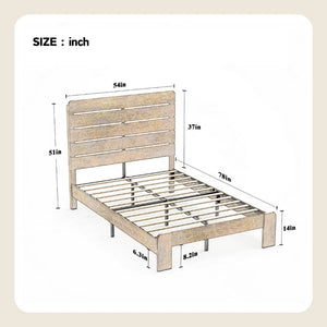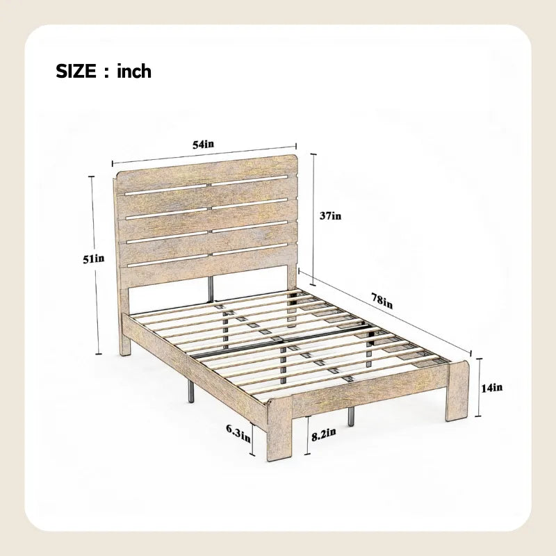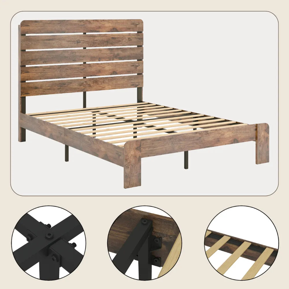 Wooden Full Size Bed Frame with Headboard, Noise Free, Vintage Brown